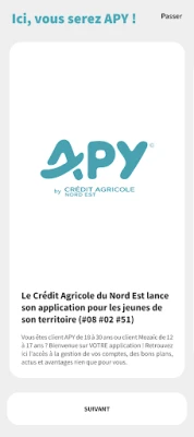 L’application APY est destinée aux clients âgés de 18 à 30 ans du Crédit Agricole du Nord Est. Et bonne nouvelle, les clients Mozaïc, âgés de 12 à 17 ans peuvent également y accéder et retrouver tous leurs avantages Mozaïc.