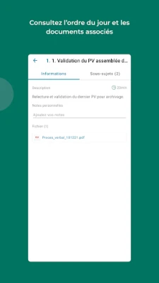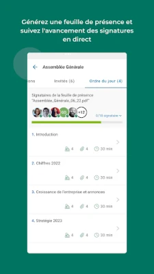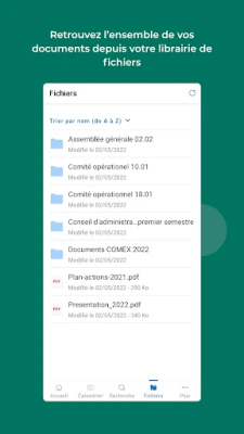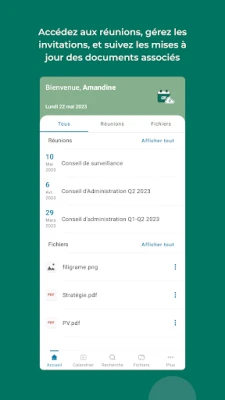 L’application permet de gérer ses réunions via des notifications avancées et une maîtrise totale des documents partagés avec ses participants.