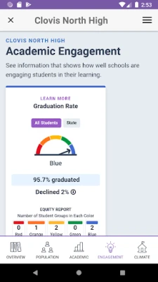 The CA Dashboard mobile app provides easy access for parents and educators on school and district progress so they can participate in decisions to improve student learning.