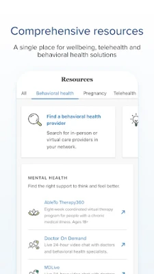 Take advantage the full scope of your benefits through the comprehensive resources page. This is where you can access well-being, telehealth, behavioral health, and other solutions.
