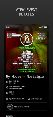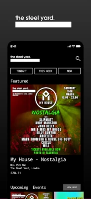Key Features: - View Events: Keep up-to-date with all upcoming events, club nights and gigs at The Steel Yard. - Buy Tickets: Purchase tickets for your next event directly within the app. - View Latest News: Get all the latest on guest appearances, special events and exclusive content. - Get Updates: Turn on notifications and never miss out on event announcements, ticket releases and exclusive app-only discounts.